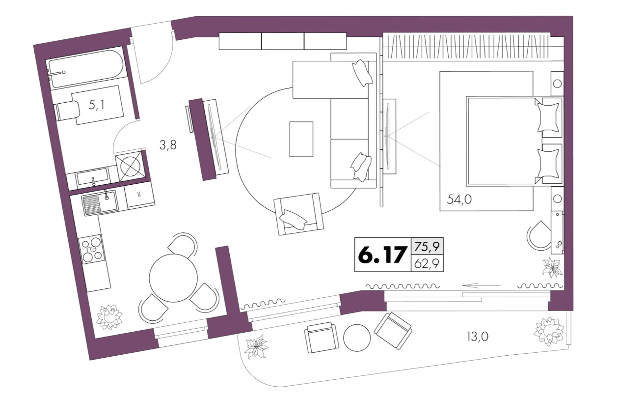 Планировки квартир представлены разнообразнейшие: от однокомнатной квартиры (в комплексе нет студий!) до просторной семейной резиденции. А на последних этажах расположатся пентхаусы, а также двухуровневые квартиры с видовыми террасами.